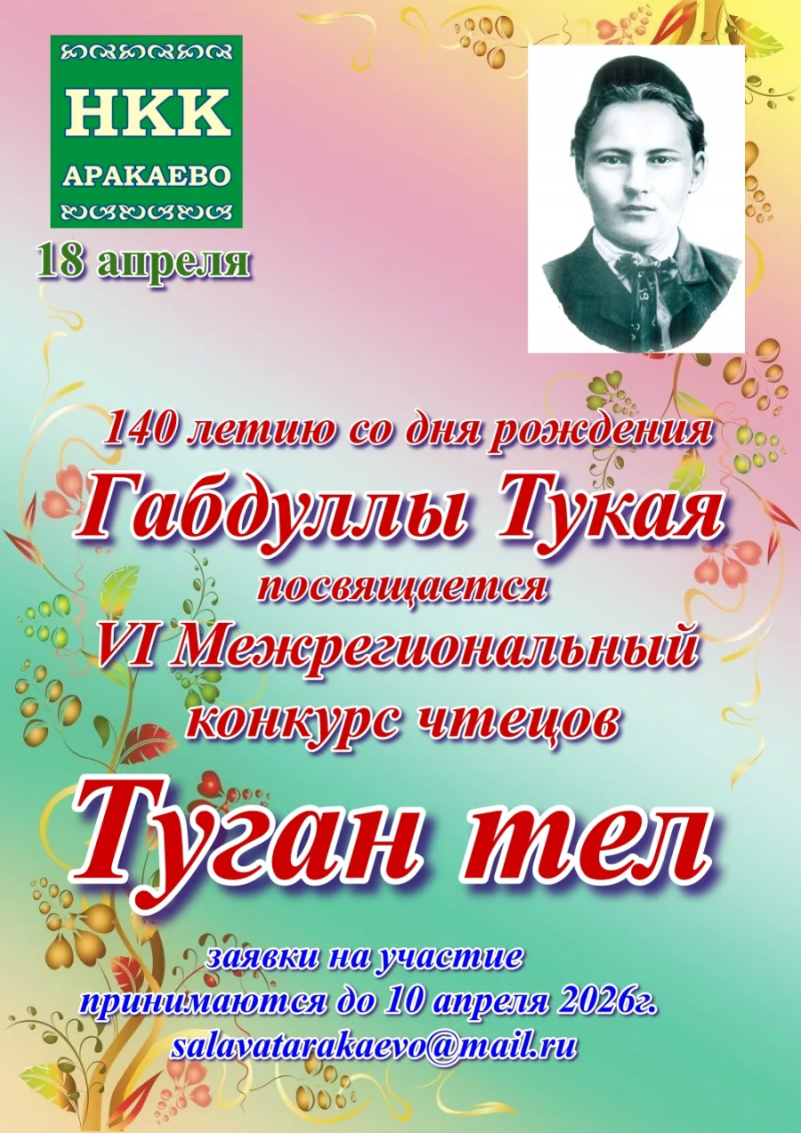 VI Межрегиональный конкурс чтецов «Туган тел» проводится 18 апреля 2026 года в Муниципальном учреждении культуры «Национальный культурный комплекс с. Аракаево».