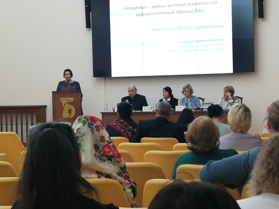 Об истории предприятия, узловых моментах трудовой жизни и достижениях коллектива рассказала Айгуль Камалиева, начальник отдела сохранения культурного наследия ГУП Башкирские художественные промыслы «Агидель» Республики Башкортостан, в докладе «Агидель – живая история башкирских художественных промыслов».
