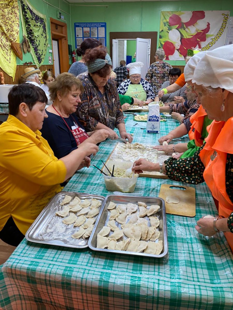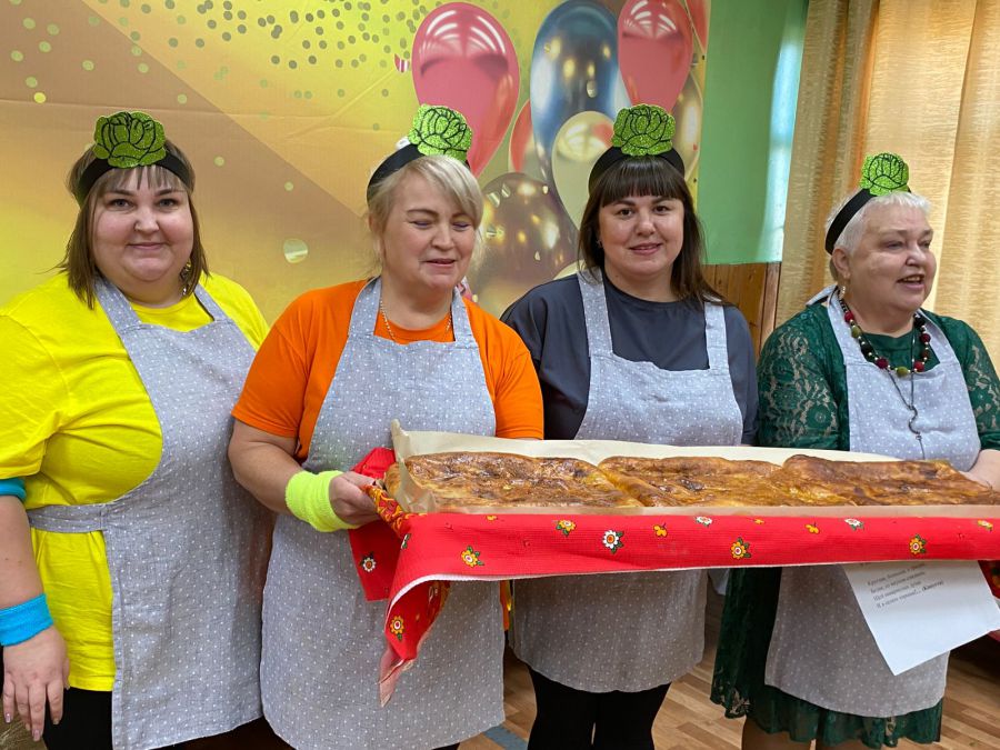 Каждая команда удивляла яркими выступлениями – визитками. Ведущая праздничной программы Анастасия Кончагина восторгалась теплом и радушием сельской атмосферы. Принимающая сторона позаботилас о комфорте своих гостей: был накрыт богатый стол, заварен чай и подготовлены ингридинты для кулинарии. Вареников и пирогов приготовили огромное количество. А гостья мероприятия Анна Постникова из Морозково привезла угощение – метровый пирог с тремя начинками, главной из которых была капуста. Под задорные частушки и танцы участники дружно лепили разные вареники и пироги из сдобного теста.