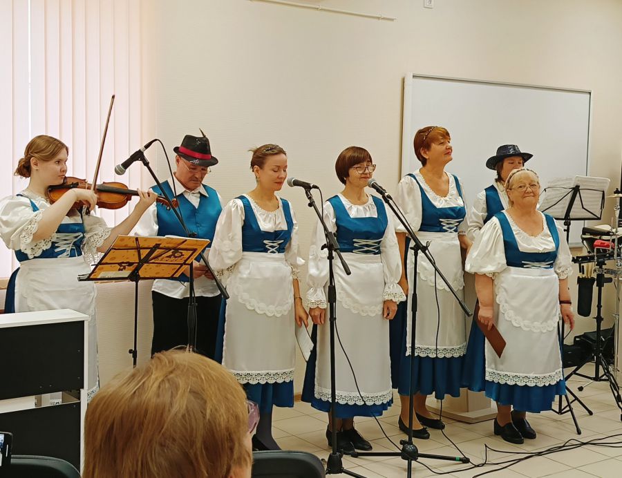 Особую атмосферу придали выступления творческих коллективов: хор немецкой песни «Feiertag» из Нижнего Тагила и екатеринбургский вокально-инструментальный ансамбль «Wunderbar» исполнили народные композиции на родном языке российских немцев, наполнив зал теплом и радостью.