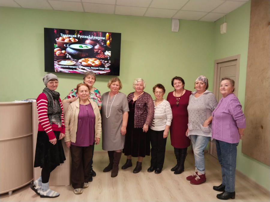 Клуб «Девушки-Семиделушки» города Нижней Салды устроил настоящее русское застолье. Каждая хозяйка принесла традиционные русские блюда домашнего приготовления: холодец с горчицей, разнообразные пирожки, запеченные овощи, аппетитные десерты в виде воздушной пастилы и печеных печеных яблок с засахаренной рябиной, а также свежие соки и домашние морсы.