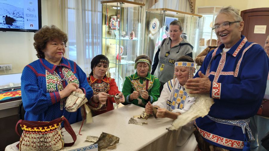 Сначала гости поучаствовали в мастер‑классе по выделке рыбьей кожи от мастера Белоярского района (Ханты‑Мансийский автономный округ), представителя народа манси Татьяны Ермиловны Тарасовой.