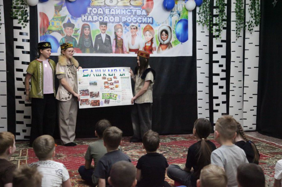 Участники творческой сборной центра представили стенгазету и рассказали сверстникам об особенностях башкирского алфавита, национальной кухни и народных промыслов. Ребята совершили путешествие в прошлое: узнали об устройстве традиционного жилища – юрты, разобрались в символике национального орнамента и цветов, а также познакомились с персонажем башкирского фольклора – Шурале.