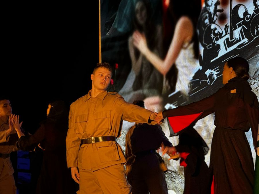 Тема многонационального единства нашла яркое художественное воплощение в программе мероприятия. На сцене, в исполнении молодых артистов школы ведущих, была представлена инсценировка «Народы России» – театрализованная композиция, демонстрирующая культурное богатство и единство российского народа. Через костюмы, танцы, песни и традиционные обряды артисты показали, как разные культуры сплетаются в единое целое под общим небом России.