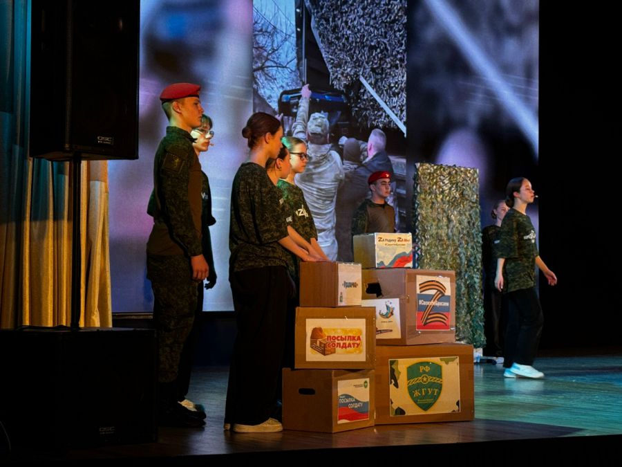 Сценарий вечера был выстроен как повествование о непрерывной связи времен. Со сцены звучали слова благодарности и уважения к советским и российским воинам, чей подвиг стал фундаментом современной России. Особое внимание было уделено преемственности поколений – от ветеранов Великой Отечественной войны до участников локальных конфликтов и защитников-современников, выполняющих свой долг в зоне специальной военной операции.