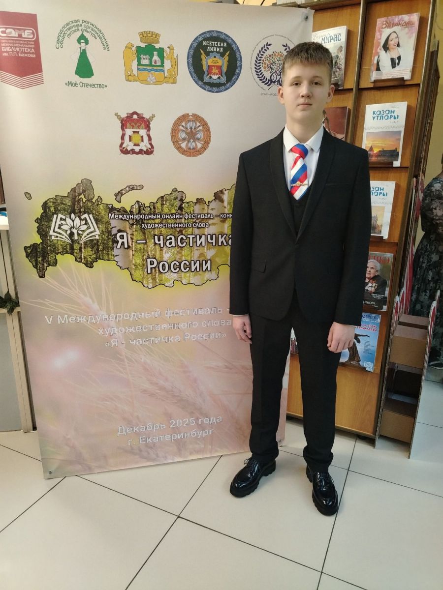 Пятнадцатилетний свердловчанин удостоен награды за заслуги в волонтерской деятельности. С 2022 года Святослав принимает активное участие в социально значимых мероприятиях и выступает с патриотическим репертуаром перед различными аудиториями. Особого внимания заслуживают его концерты в госпиталях для раненых бойцов, выступления в воинских частях, а также поездка на Донбасс в феврале 2025 года, где он поддерживал защитников Отечества своим творчеством. В репертуаре юного артиста – гражданско-патриотические песни, в том числе авторские.