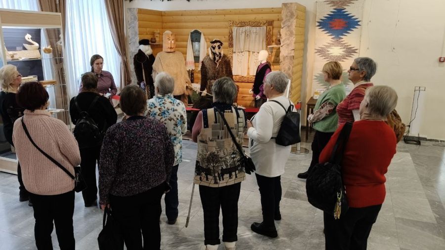 Первая организованная группа численностью 12 человек посетила открывшуюся выставку «Накануне Рождества» в Центре традиционной народной культуры Среднего Урала. Участники познакомились с экспозицией в ходе увлекательной экскурсии, проведенной ведущим методистом отдела выставочных проектов Александрой Толстовой. По завершении экскурсионной части гости приняли участие в мастер-классе «Зайчик на пальчик» под руководством методиста по традиционным народным ремеслам Натальи Ивачевой.