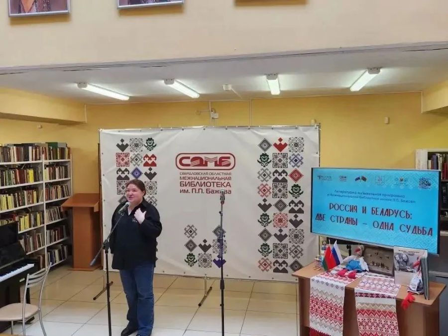 В рамках празднование этой знаменательной даты, 4 апреля, в Межнациональной библиотеке имени П.П. Бажова в Екатеринбурге при содействии регионального отделения Общероссийской общественно‑государственной организации «Ассамблея народов России» в Свердловской области состоялся праздничный вечер. Мероприятие, которое библиотека уже не первый год проводит совместно с давними партнерами – местной общественной организацией Белорусская национально-культурная автономия «Белорусы Урала» - «БЕЛУР» г. Екатеринбург и Свердловская региональная общественная организация этно-культурное объединение «Русский мир», – было посвящено Дню единения народов России и Беларуси. В этот вечер звучали песни и стихи на двух языках, а также популярные мелодии из репертуара легендарных белорусских «Песняров».