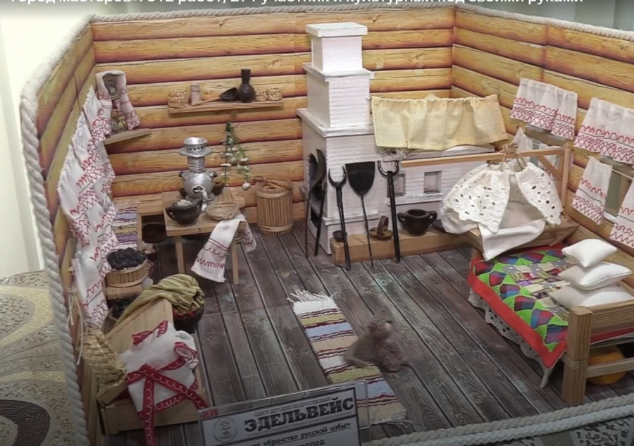 Жемчужиной экспозиции по праву стала миниатюра «русская изба». Ее автор признается: больше всего сил и кропотливого труда потребовали мелкие детали, без которых не воссоздать подлинный уют старины.